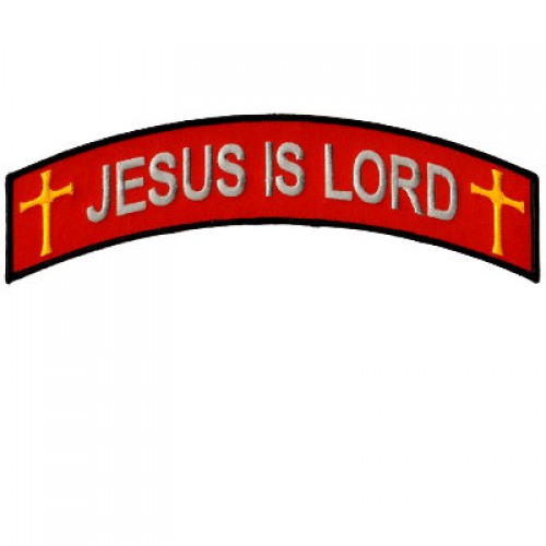 Jesus is Lord Top Rocker measures about 10" wide by about 2" tall.